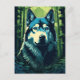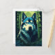 Husky in the green lush forest postcard
