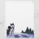 Animal Parade Husky Dog Coordinating Personalised Stationery and Accessories brought to you by Imagine That! Design features our original art of a cute black and white Siberian Husky dog character standing on a snowy hill in front of a majestic mountain range and a textured blue sky with a playful wavy purple border. This fun pet art, painted by our talented children’s illustrator, Traci Van Wagoner, is perfect Husky lovers, dog lovers, and humourous animal art lovers of all ages. On many of our whimsical Husky dog stationery set accessories you'll find this cute dog coming and going with the his head on one side and this tail on the other. Join the Animal Parade and bring a smile to the face of someone you love with a gift of our cute coordinating and personalised Husky dog stationery gift sets. Woof!