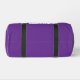 This small size duffel bag is shown in a solid colour of purple with black accents.