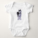 Animal Parade Husky dog T-shirts and Sweatshirts brought to you by Imagine That! Design features our cute black and white dog character standing on a snowy hill in front of a majestic mountain range and a textured blue sky with a playful wavy purple border. Painted by our talented children's illustrator, Traci Van Wagoner. See the cute St. Bernard dog coming and going with this fun artwork of the playful pup’s head on the front and the funny dog's tail on the back. Show your best side coming and going today and bring some smiles to the world. Woof!