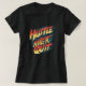 The T-shirt design for "Hustle, Hit, Never Quit" features a bold and motivational look, perfect for athletes or sports fans. The phrase "Hustle, Hit, Never Quit" is arranged in a dynamic font, with each word emphasized in a way that conveys strength and determination.