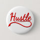 The word "hustle" in red with drop shadows in black. Custom buttons for shirts, jeans and backpacks.