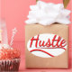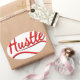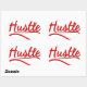 The word "hustle" in red with drop shadows in black.