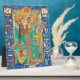 The colors are magnificent. There are so many Egyptian symbols I am so happy I got this size. All I can say is its not a piece you just glance at without seeing something you didn't see in your last glance. This is a gorgeous representation of Hathor, Queen of the world. Thanks to the Artist. The colors are vivid without being gawdy. Clear and sharp image.