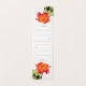 Hybrid striped tea rose orange-red watercolor floral on a white and coral background vertical wedding guest place seating cards. Perfect for a botanical rose flower-themed wedding. Edit these cards with your own table numbers and handwrite your guest names. Other matching items are available. Original watercolor hand painted rose and design by Sarah Trett for www.mylittleedenweddings.com