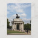 Hyde Park Corner is the confluence of six major London roads. In its centre stands the Wellington Arch. Built as a memorial to Duke of Wellington, and forming a grand entrance into London, it was originally the north west entrance to the grounds of Buckingham Palace. The gilded statue on the top is the Angel of Peace. This photograph was taken from the western side, where the pedestrian approach 'leads' the eye in a gently curve towards the monument. It is a clear sunny day, and the viewer is invited to visit the monument or simply sit on the grass and gaze at its magnificence.