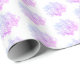 Purple, blue, and pink gradient hydrangea blossoms pattern on a white background.