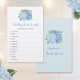 This bridal shower game is a wedding word scramble with 12 words to unscramble. It features a watercolor blue hydrangea floral design. Personalise the text on the back with the bride's name. Matching bridal shower party supplies available.