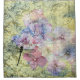 Floral hydrangea in pink and blue, with black dragonfly, and postmark ephemera with a yellow and grey floral art nouveau style base. Girly vibe for bath decor.