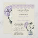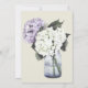 A lilac lace edge and beautiful arrangement of Hydrangea blooms in purple and white in a Ball glass jar set off this wonderful wedding invitation setting the theme for your rustic, shabby chic, or French country wedding. The watercolor hydrangea arrangement is repeated in a large size on the back of the invite.