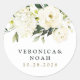 Hydrangea Elegant White Gold Rose Floral Wedding Classic Round Sticker