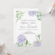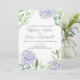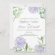 A beautiful blue and purple hydrangea floral bouquet wedding invitation.
