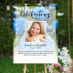 The perfect memorial poster for greeting family and friends as they enter your loved one's celebration of life. Especially for someone who loves flowers and perhaps gardening - the design features a square personal photo, 5 lines of custom text and a background photo of beautiful blue hydrangeas. You can easily change this out with your own background photo . Classic yet unique - this template is so easy to personalise and will make a wonderful memorial keepsake too.