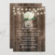 Hydrangea Flower Mason Jar & String Lights Rustic Barn Wedding Invitations.