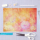 A pretty watercolor design of hydrangeas and roses with a faint script in the background. Done in colours of purple, pink, gold and amber.