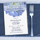 Wedding rehearsal and dinner invitation with blue hydrangea flower. Customize many lines of text templates to invite the wedding party members to the church, or ceremony rehearsal. Also include the dinner information for all members to celebrate together the night before the wedding. A realistic, light blue bloom decorates the top. Text is in shades of blue to match the flower. Upgrade the paper as you choose, or select the instant download option.