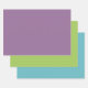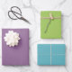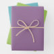 Set of three gift wrapping paper sheets with hydrangea purple, fresh green, and spring blue colour theme. Each sheet measures 19" x 29" inches. Available in matte and semi-gloss.