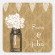 hydrangea in mason jar, on a rustic , burlap wash out damask,wedding favour stickers and envelope stickers. Matching products also available.
