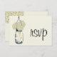 Perfect for a country style wedding or maybe you just love Mason Jars! Mason Jar hanging on a hook filled with hydrangeas. A cream ivory background with ivory & green hydrangea flowers. If you have any questions on this design or want a colour change please email me paula@labellarue.com Also check for the INVITATION, RECEPTION and GUEST SEATING Cards to match!