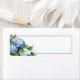This return address label is shown in basic white with a lovely blue hydrangea art print.