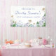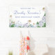 A beautiful welcome sign with the Wow factor that will impress your guests. Soft dusty blue and purple hydrangeas mix with soft blush white and blush white wild roses. The birthday celebrant's name is written in an easy-to-read script font. the Birthday year follows in a bold traditional serif font. All of the text is editable so you can customise your welcome.