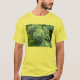 Lovely blue hydrangeas in full bloom on summery yellow t-shirt.