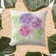 This Summer Outdoor Pillow, adorned with three watercolor hydrangeas in shades of pink and calming lavender, is the ideal accent for your patio furniture.