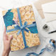 Hydrangea watercolor pattern, yellow and blue wrapping paper