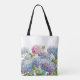 For a wedding event planner, this bag features beautiful hydrangeas blooming in different shades from pink to blue to lavender. Front has a name and the text "Weddings % Events" which you may personalise with your own text.