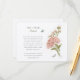This stunning wedding information card features delicate hydrangeas and white blossoms, elegantly paired with soft green foliage. The graceful design includes subtle touches of a bluebird and butterfly, adding a whimsical and serene charm. Perfect for conveying essential details such as directions, ceremony specifics, and gift preferences, this card combines vintage-inspired artwork with modern functionality. Ideal for couples seeking a refined and timeless way to share additional information with their guests.