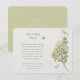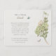 This stunning wedding information card features delicate hydrangeas and white blossoms, elegantly paired with soft green foliage. The graceful design includes subtle touches of a bluebird and butterfly, adding a whimsical and serene charm. Perfect for conveying essential details such as directions, ceremony specifics, and gift preferences, this card combines vintage-inspired artwork with modern functionality. Ideal for couples seeking a refined and timeless way to share additional information with their guests.