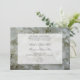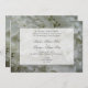 A simple yet sophisticated wedding invitation featuring a background photo of white hydrangeas on front and back. Personalise the grey text on front over sheer section. Wording of invitation is from bride's parents.