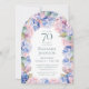 This watercolor hydrangeas 70th birthday party invitation is whimsical and stunning! With its lovely arch of multi-hued blue, pink, and purple hydrangeas it is perfect for your loved one who's turning seventy. By selecting Personalise this template and typing in your information you can see your gorgeous invitations in seconds!