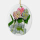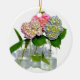 Classic rustic pink, blue, and green Hydrangeas in Mason jars