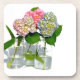 Classic rustic pink, blue, and green Hydrangeas in Mason jars