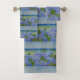 This towel set features a beautiful painting of hydrangeas by the ocean by Brendan Loughlin, an artist from Guilford, Connecticut. Look for matching products.