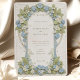 This beautiful wedding invitation features a timeless Art Nouveau design adorned with elegant blue hydrangeas and lush green foliage. The front of the card showcases intricate floral patterns intertwined with graceful scrollwork in soft pastel shades of blue, green, and cream. The detailed design creates a serene and romantic atmosphere, perfect for a sophisticated wedding celebration. The back of the invitation continues the floral theme, highlighting the wedding date with a refined arrangement of hydrangeas and leaves. Ideal for couples seeking a blend of traditional elegance and artistic charm, this invitation embodies the essence of romance and nature.
