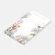 A watercolor flower garden nature scene in beautifully soft pastel pink and blue tones with white blue and pink hydrangea flowers. A cardinal bird perched among the blossoms gives a serene look to this beautiful scene. A charming monogrammed notepad for the home or office. Lovely art gifts for a new home, for Mother's Day, or for a gardening enthusiast's Birthday or Christmas gift. Perfectly pretty nature lover decor that will look lovely in most any setting.