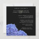 Beautiful blue hydrangeas on a black background. This invitation is perfect for any couple to invite guests to their wedding.