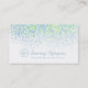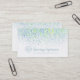 Abstract watercolor dabs painted business card in shades of blue, green and contrasting white text. Ideal for water based technology companies, hydroponics or eco-friendly water conservation or cleaning companies. Customise with your own address, name, website, phone number and initials in this circle style logo business card design. Design and abstract artwork by Sarah Trett for www.mylittleeden.com