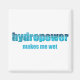 Care about the environment? Celebrate water as a clean green renewable alternative energy source on Earth Day or any day! Colourful ecology gift for those sick of pollution and fossil fuels. Dam! Design reads "Hydropower makes me wet."