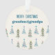 Customise both sides for a truly unique keepsake. Front Side features your beloved baby's photo nestled within the delightful Scandinavian tree pattern. A perfect way to commemorate a baby's first Christmas or a cherished family moment. Back Side showcases the same serene tree pattern, beautifully framing your customisable holiday message. Personalise "Merry Christmas" and the "Grandma & Grandpa" text with names, dates, or your own special greeting.