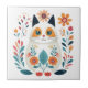 Hygge White Flower Cat Scandinavian Folk Art Tile