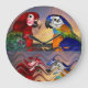 HYPER PARROTS RED,BLUE ARA ,COLORFUL REFLECTIONS LARGE CLOCK