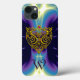 Elegant ,unique,colourful 3D digital art, hi tech jewel : gold heart , celtic knots ,stylised animals, vibrant,shiny gem stones,blue,pink,lilac fuchsia violet organic fractal swirls,waves. Very accurateddesign, modelling and rendering by Bulgan Lumini (c) .Part from series Hyper Talismans.