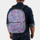 Experience the fusion of functionality and art with our customisable printed backpack. This print is a captivating display of intricate artistry. It features a complex pattern of swirling shapes and designs that are densely packed together. The design is dominated by vibrant shades of purple, blue, and pink, creating a mesmerising visual effect. White and black outlines and details are used to highlight certain areas of the design, giving it a three-dimensional appearance. The pattern includes elements reminiscent of flowers, leaves, or abstract organic shapes. The use of gradient colouring adds depth to the design, making some parts appear lighter while others are darker. The name and the initial letter are fully customisable.