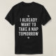 Cool artwork with the funny saying "I Already Want To Take A Nap Tomorrow" is a perfect gift or present for any men or women you want to surprise. Funny Quotes, Sarcasm, Humour and Joke Products. Buy now!