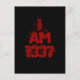 I Am 1337. Deep Red Text. Leet Gamer. Postcard