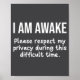 I Am Awake Please Respect My Privacy Funny Sarcast Poster