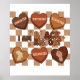 The image features a chequered background with various shades of brown. There are six heart-shaped objects with different words and symbols inside them. In the centre of the image, the text "I AM BLACK HISTORY" is prominently displayed in bold, multi-coloured letters that match the shades of the hearts. This visually captivating image emphasizes pride, education, and empowerment within the context of Black history.